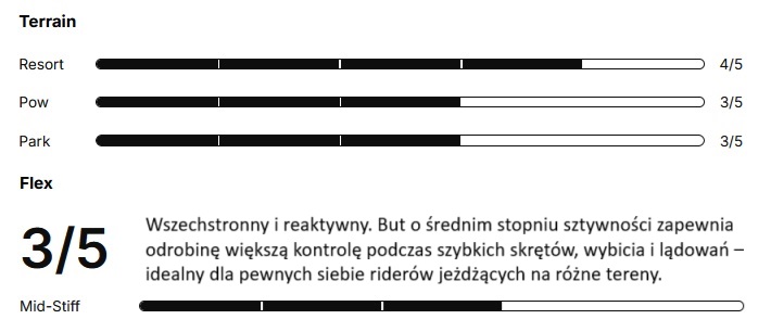 - Articulujący flex zone - Górna część mankietu buta jest asymetrycznie połączona z dolną częścią, co pozwala na naturalne zginanie kostki i zapewnia świetne wsparcie bez deformacji skorupy.