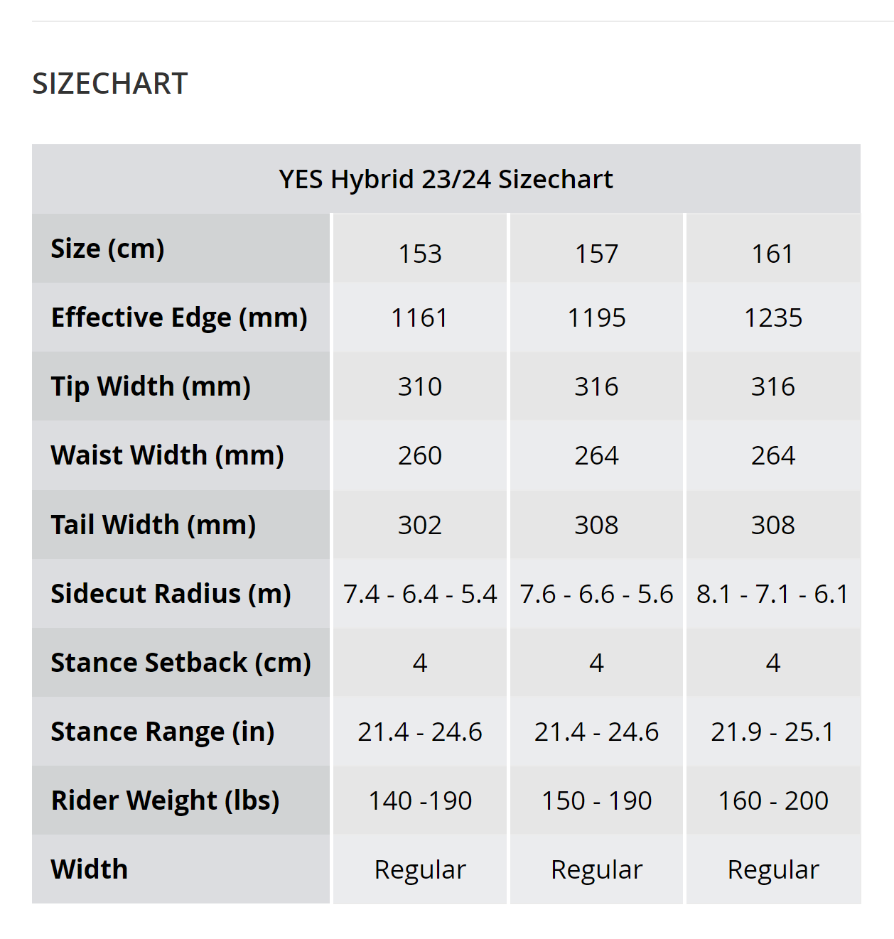 Deska YES HYBRID ma dwie warstwy włókna szklanego. Warstwa dolna i górna. Obie warstwy tej płyty wykonane są z trójwymiarowego włókna szklanego osadzonego pod kątem 45 stopni. Trójwymiarowe włókno szklane zapewnia dobrą sztywność skrętną. Zapewnia to stabilność i reakcję i jest często stosowane w deskach w pełni profesjonalnych z najwyższej półki.