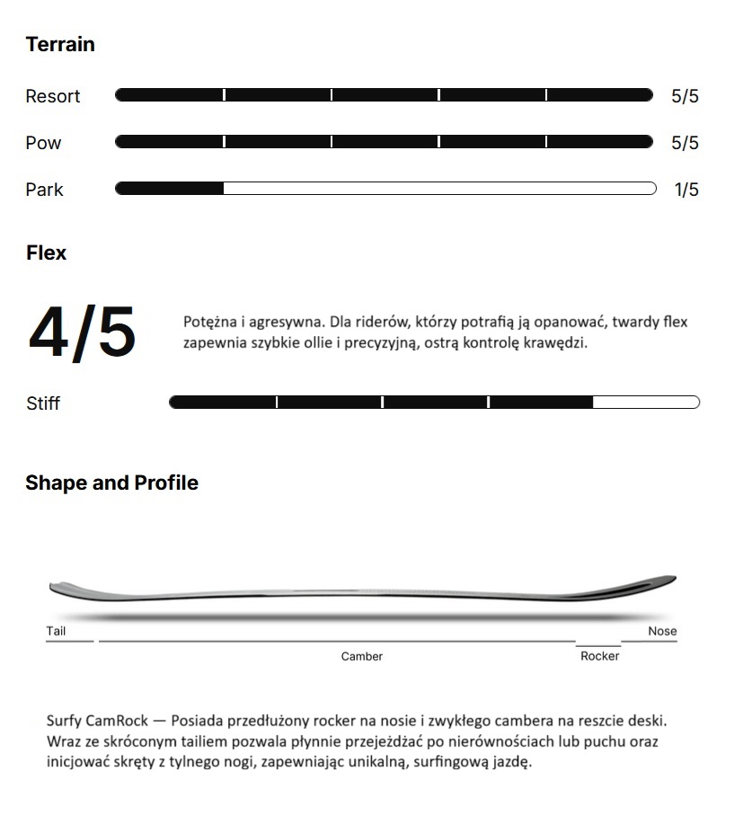 Nasza najbardziej zaawansowana technologia produkcji łączy elementy konstrukcji typu cap i sandwich, jednocześnie redukując wagę w środku deski. Efektem jest potężny flex od tipa do taila, który nadal zapewnia precyzyjne odczucia skrętu i kontrolę krawędzi.